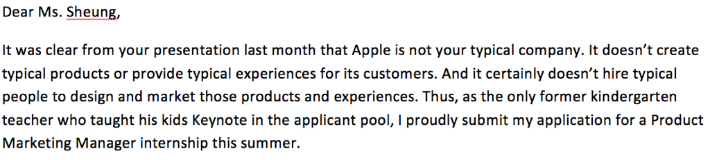 In an effort to fit in, I used the exact same cover letter and resume template that everyone else used.