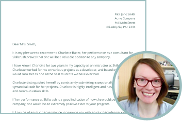 We don’t place students in jobs (yet) and we can’t guarantee you work. But many of our students have gotten full-time work using the skills they learned at Skillcrush, and even MORE have used their new skills to do freelance, project based work that has earned them thousands of dollars on top of their full-time salaries.